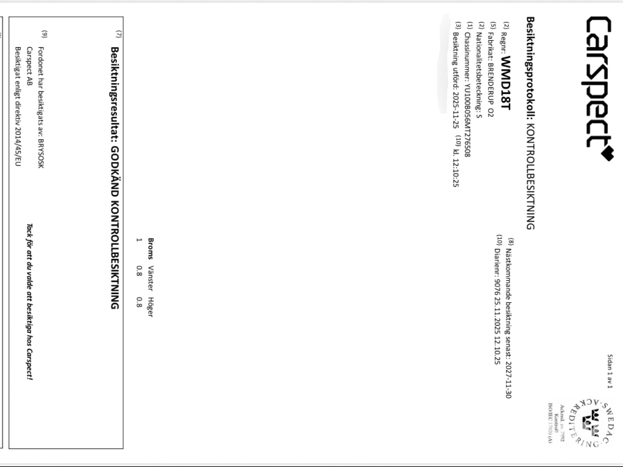 • Serie/chassinummer framgår