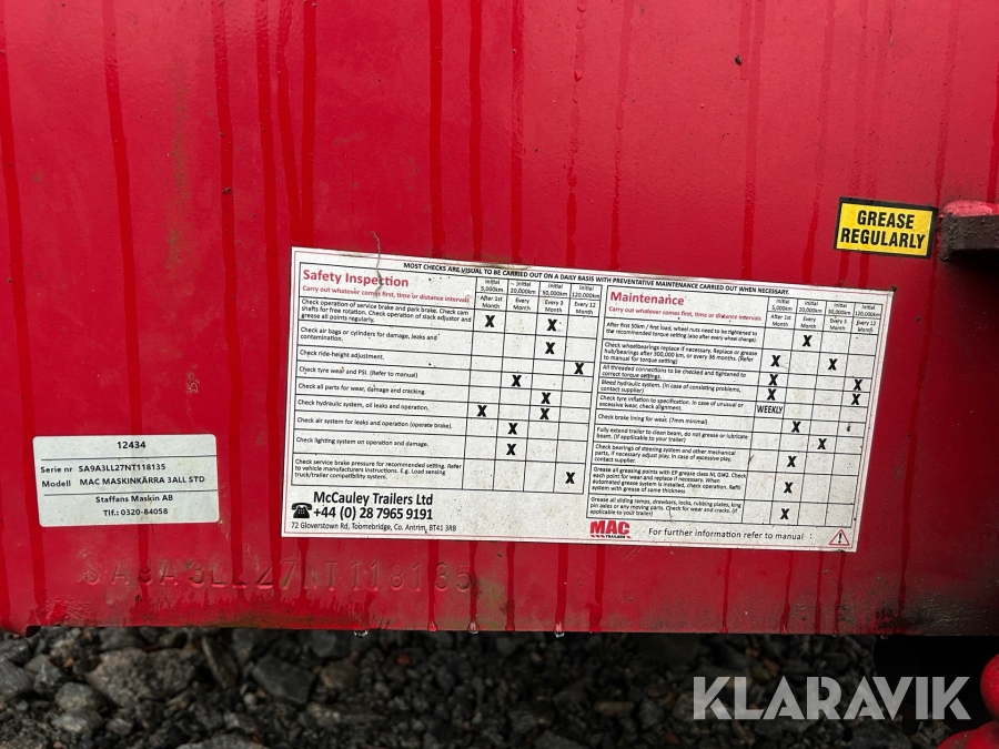 Maskintrailer Mc Cauley 3 ALL STD med traktordrag