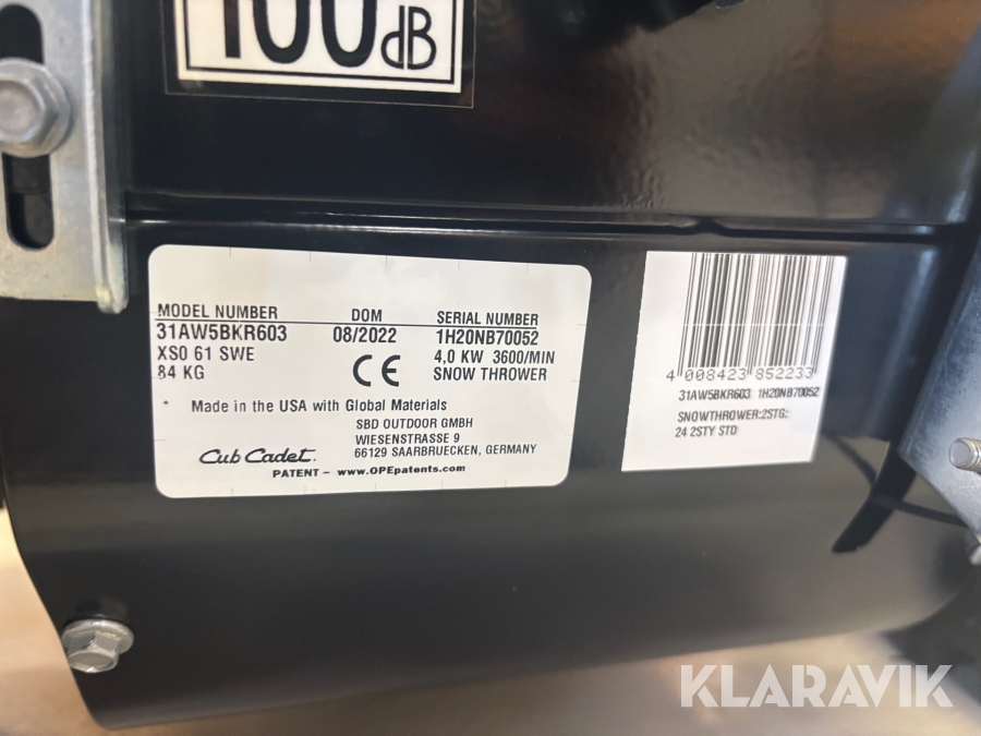 Snöslunga Cub Cadet XS2 61 SWE 4.0 kW 3 års garanti