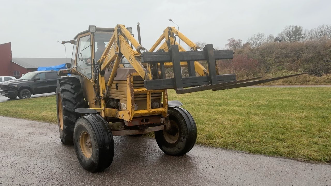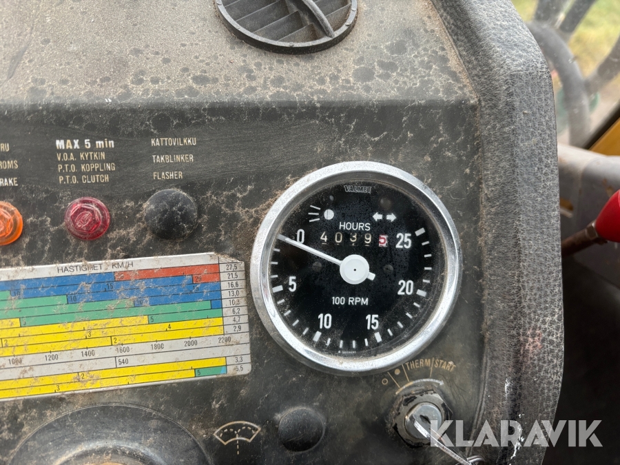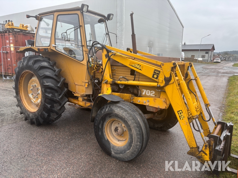 Traktor Valmet 702 med lastare och kärra