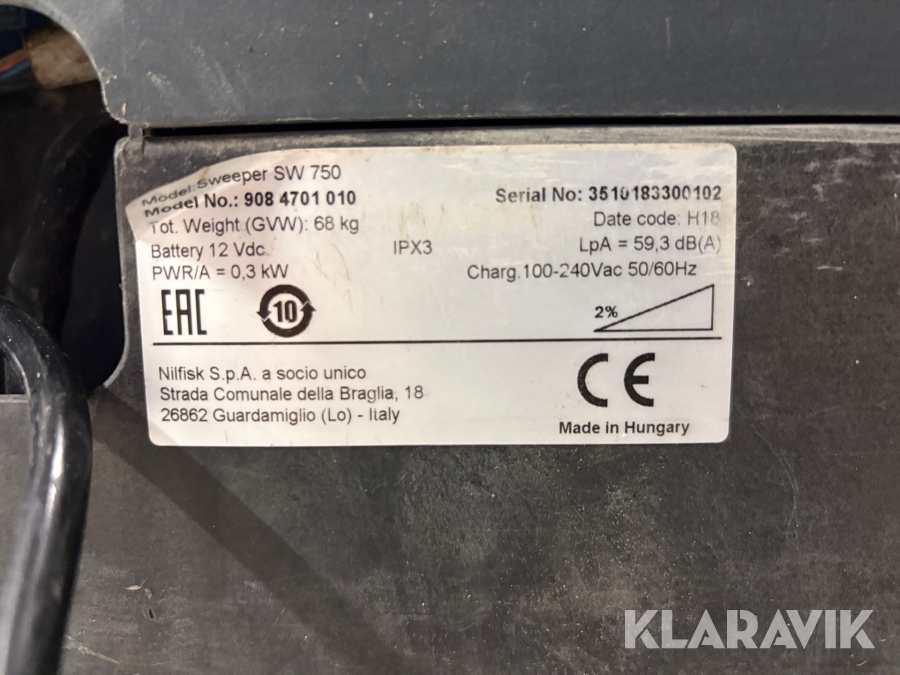 Sopmaskin med sug Nilfisk SW 750