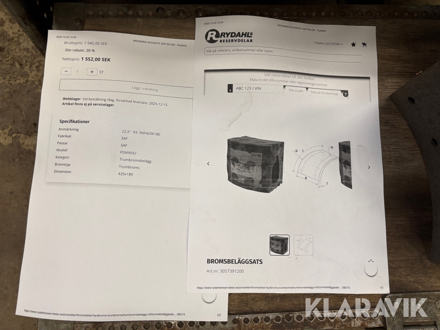 Boka frakt? Det finns ingen specifik information om frakt för just det här objektet, men om du skickar oss en förfrågan via vårt fraktformulär, så undersöker vi möjligheten. Paket, EU-pall eller större maskin? Klaravik har fraktavtal med Schenker och i de fall vi kan hjälpa till med frakt gäller det objekt som ryms i paket eller inom en EU-pall (upp till 120*80 cm och 990 kg). Det går att beställa frakt inom Sverige, dock inte till utlandet. Vid frakt på större maskiner rekommenderar vi gärna transportföretag som du kan kontakta.