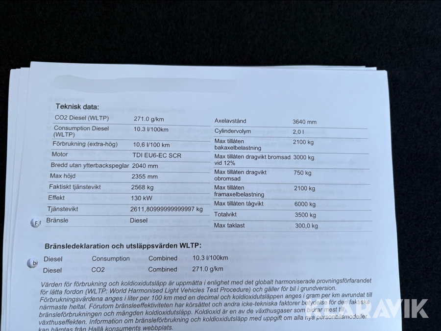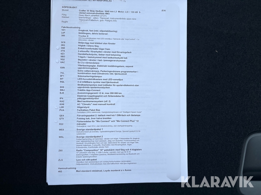 • Serie/chassinummer framgår