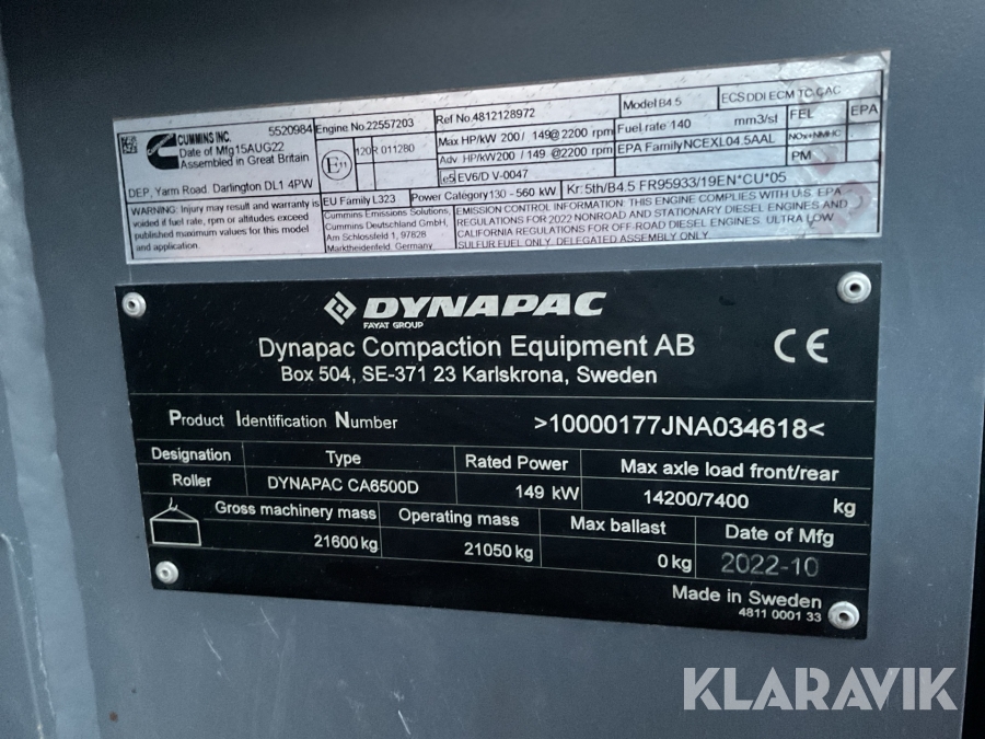 • Serie/chassinummer framgår