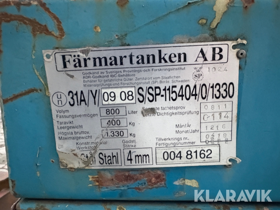 Boka frakt? Det finns ingen specifik information om frakt för just det här objektet, men om du skickar oss en förfrågan via vårt fraktformulär, så undersöker vi möjligheten. Paket, EU-pall eller större maskin? Klaravik har fraktavtal med Schenker och i de fall vi kan hjälpa till med frakt gäller det objekt som ryms i paket eller inom en EU-pall (upp till 120*80 cm och 990 kg). Det går att beställa frakt inom Sverige, dock inte till utlandet. Vid frakt på större maskiner rekommenderar vi gärna transportföretag som du kan kontakta.