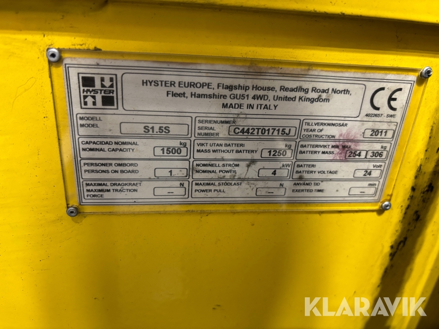 Ledstaplartruck Hyster S1.5S