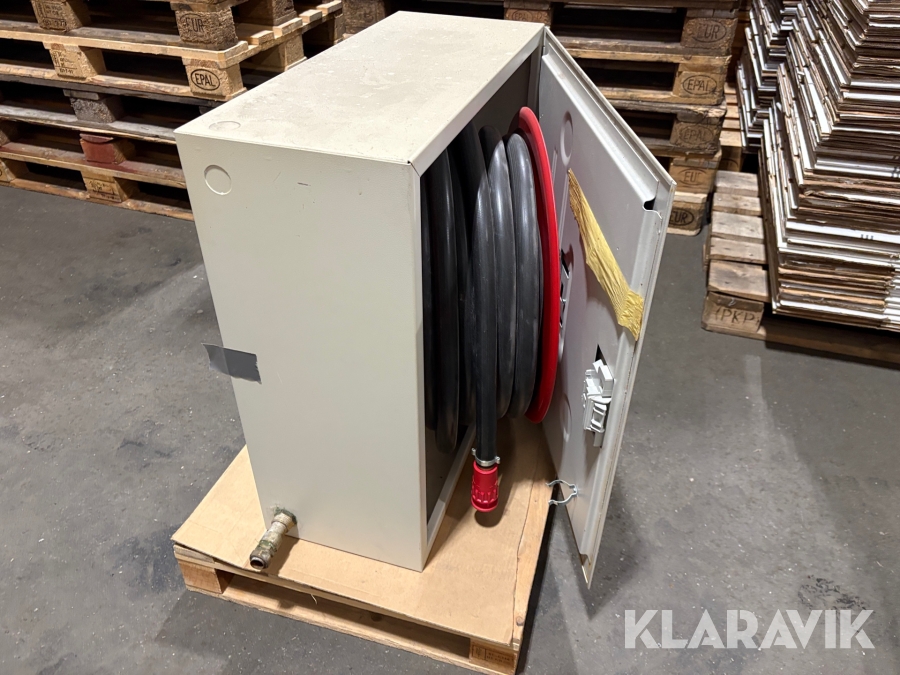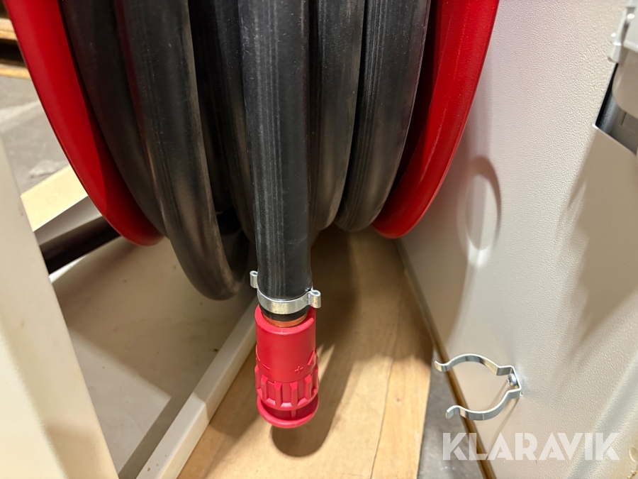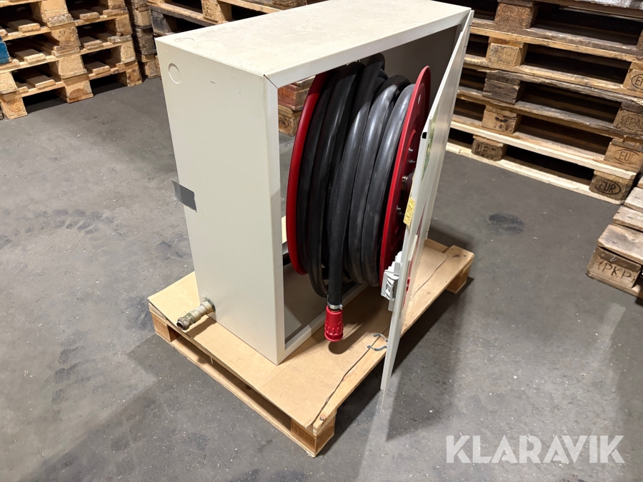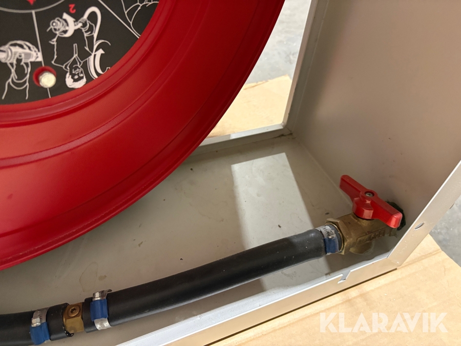 Har suttit uppe några år men slangen är aldrig använd. Senast besiktigad 2019.
