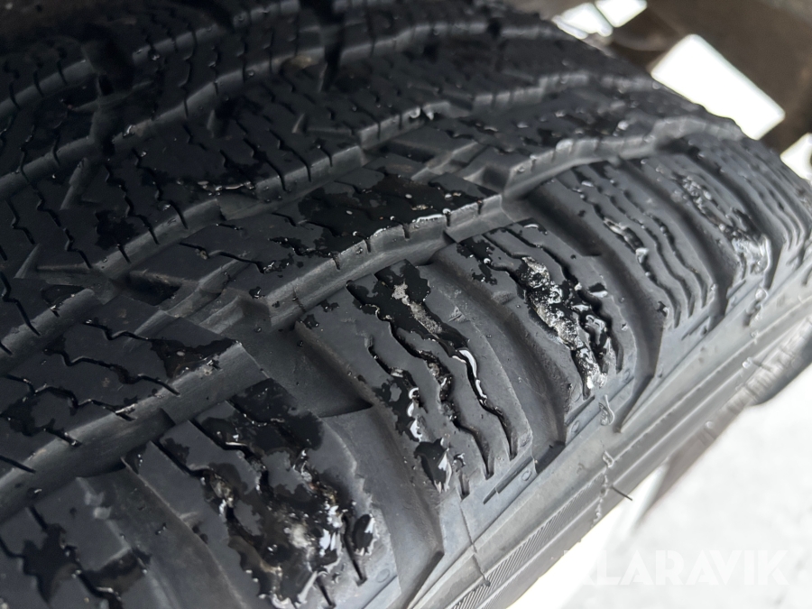 Mindre ilastningsskador/märken, delvis ifyllda med vit färg.