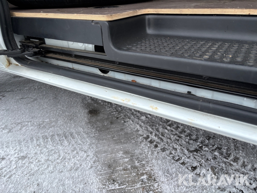 Rost/rosor på tröskel vid skjutdörr, höger sida.