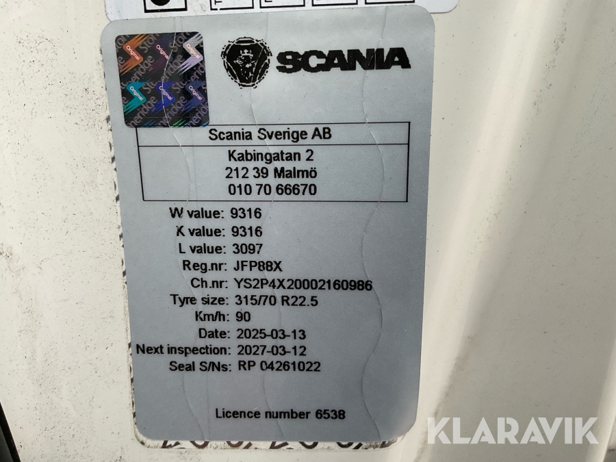 • Serie/chassinummer framgår