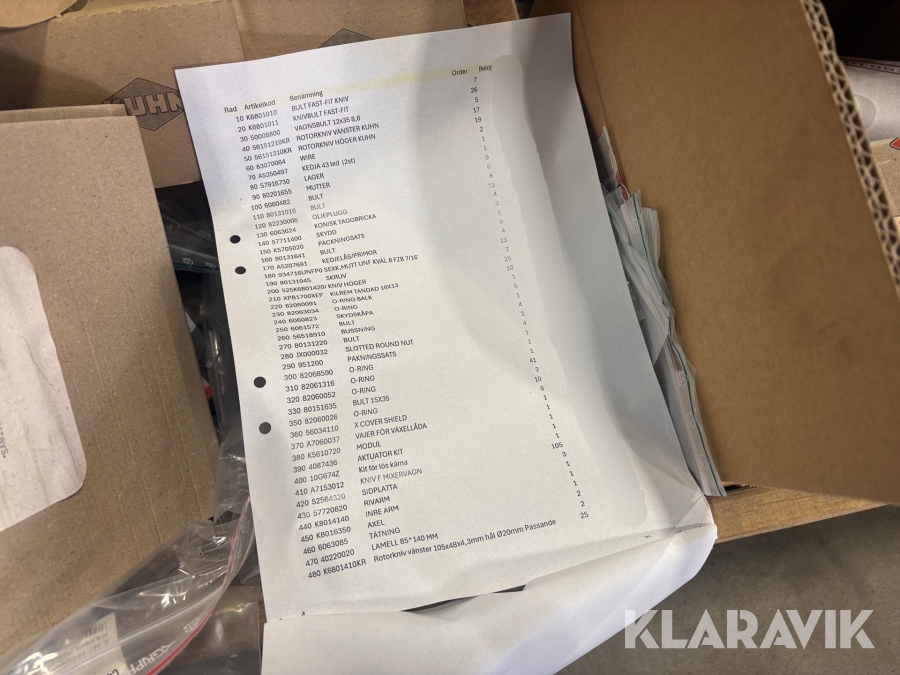 Diverse reservdelar Kuhn
