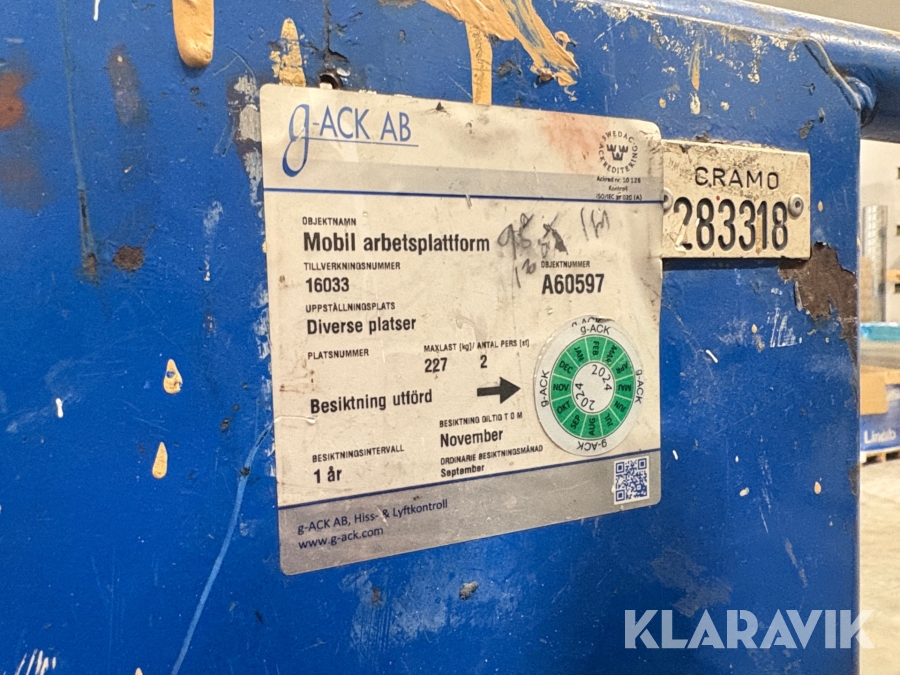 Du som köpare är skyldig att kontrollera objektet vid hämtning. Skiljer sig något avsevärt jämfört med informationen på klaravik.se? Kontakta då Klaravik innan du tar objektet från platsen. Läs fullständiga köpvillkor.