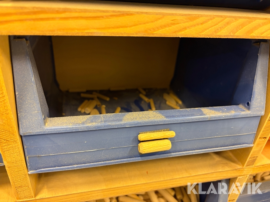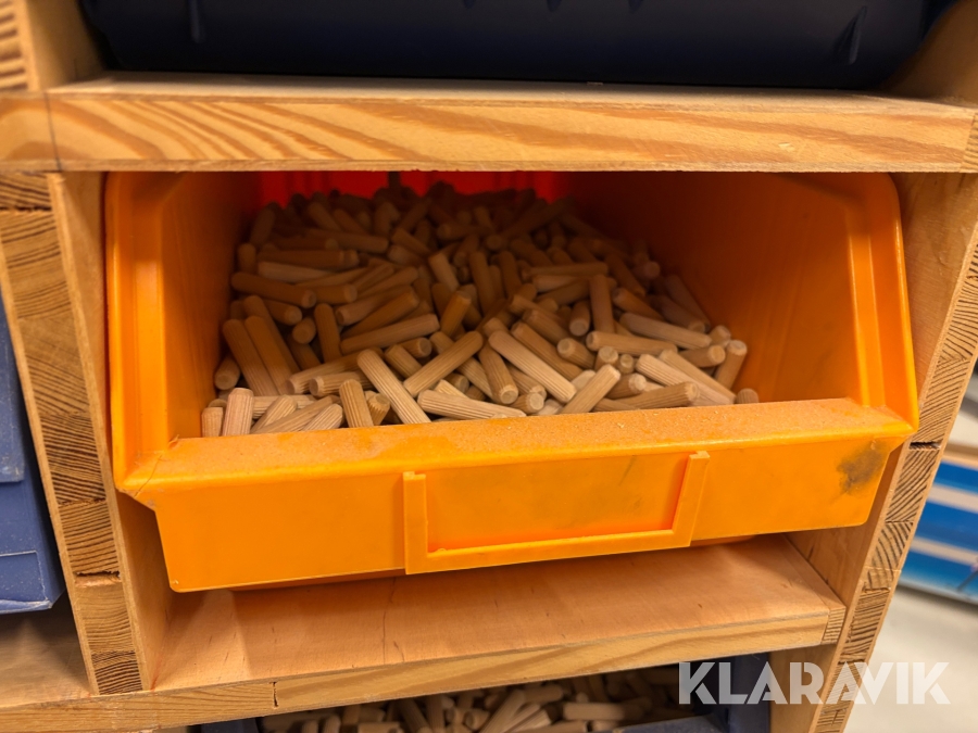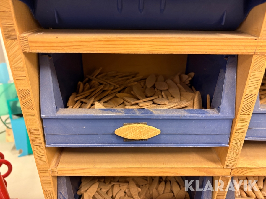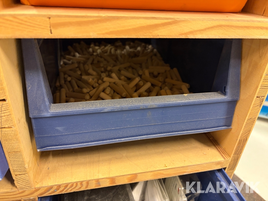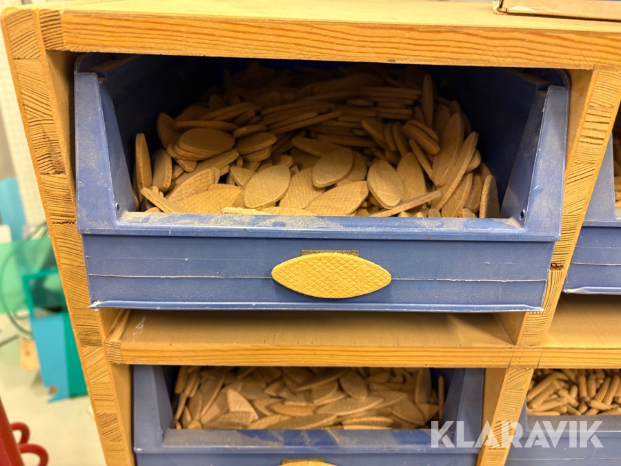 Sortiment med Kex & plugg i hyllsystem