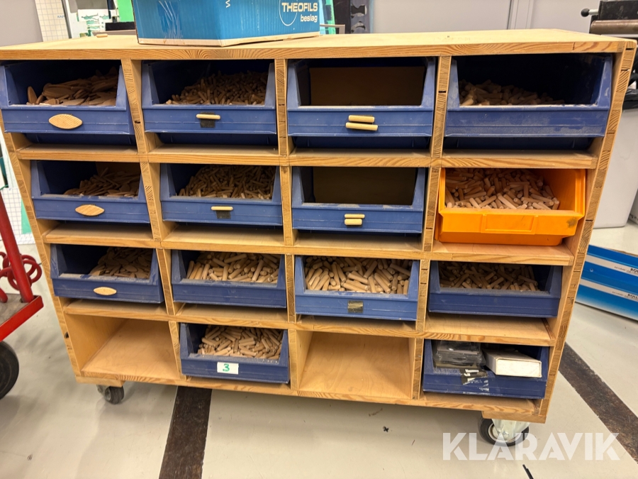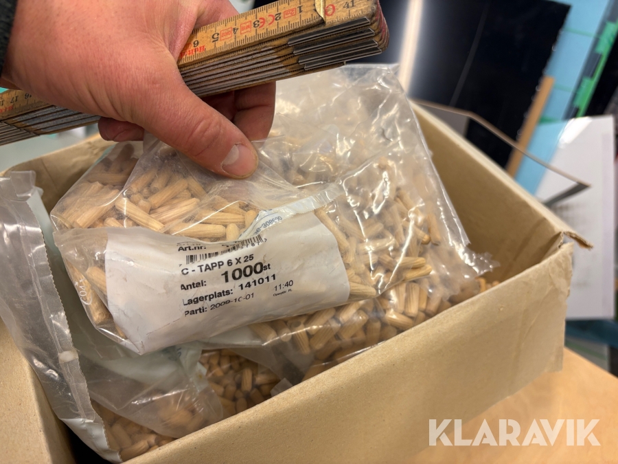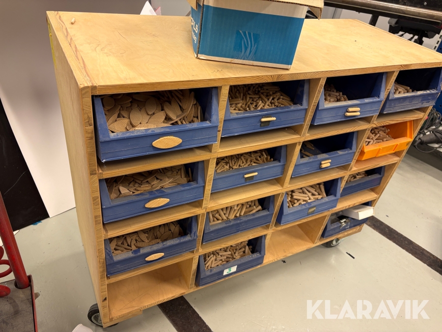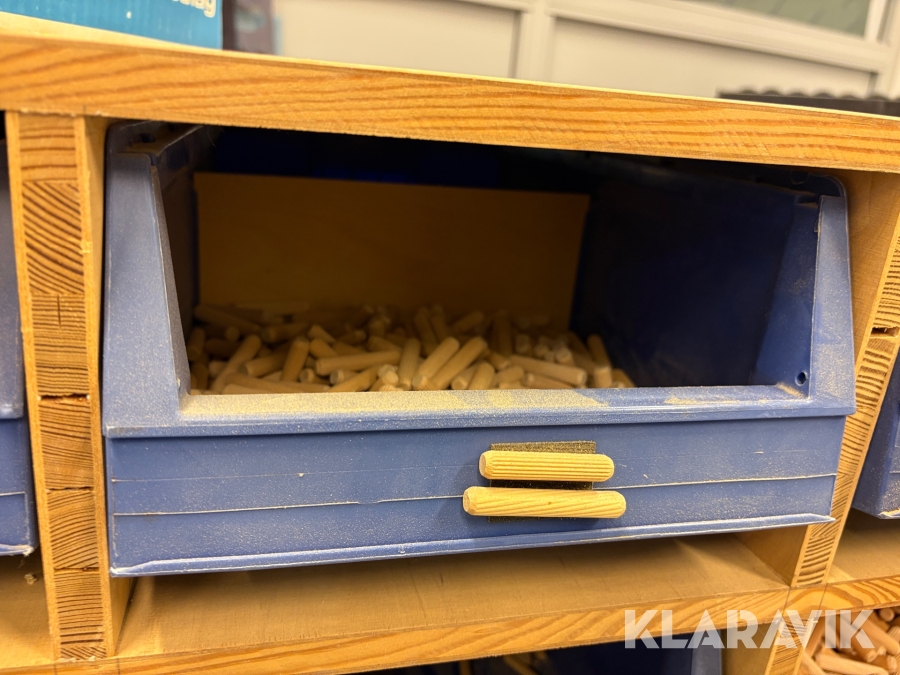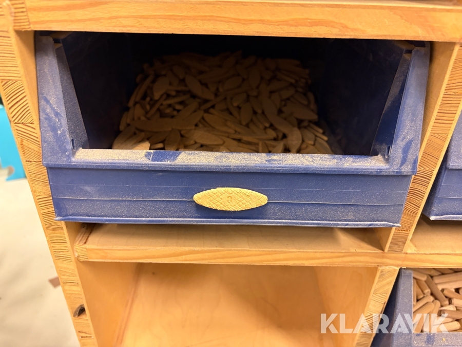 Sortiment med Kex & plugg i hyllsystem