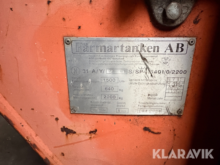 Dieseltank Färmartanken AB 1500 liter