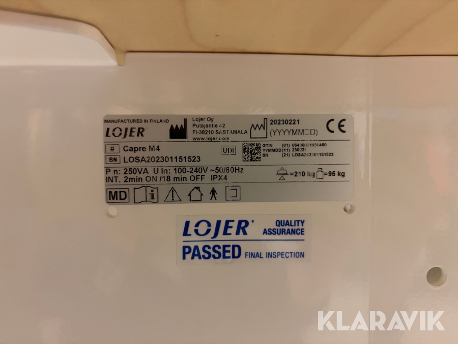 Boka frakt? Det finns ingen specifik information om frakt för just det här objektet, men om du skickar oss en förfrågan via vårt fraktformulär, så undersöker vi möjligheten. Paket, EU-pall eller större maskin? Klaravik har fraktavtal med Schenker och i de fall vi kan hjälpa till med frakt gäller det objekt som ryms i paket eller inom en EU-pall (upp till 120*80 cm och 990 kg). Det går att beställa frakt inom Sverige, dock inte till utlandet. Vid frakt på större maskiner rekommenderar vi gärna transportföretag som du kan kontakta.