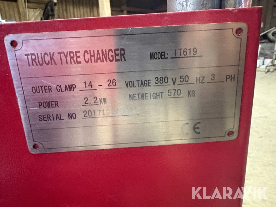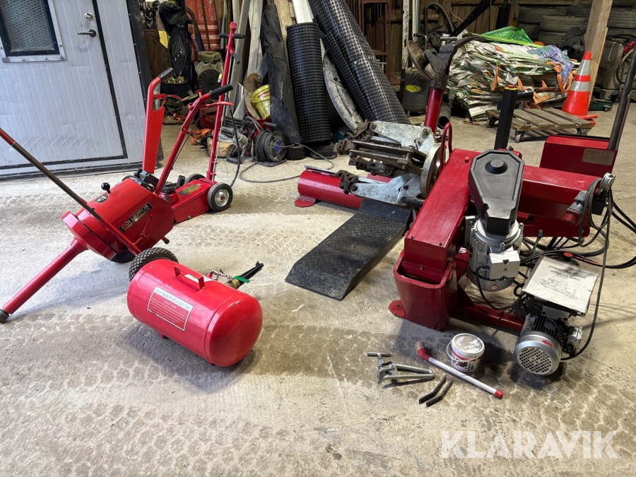 Däckomläggningsmaskin till lastbil och flera redskap