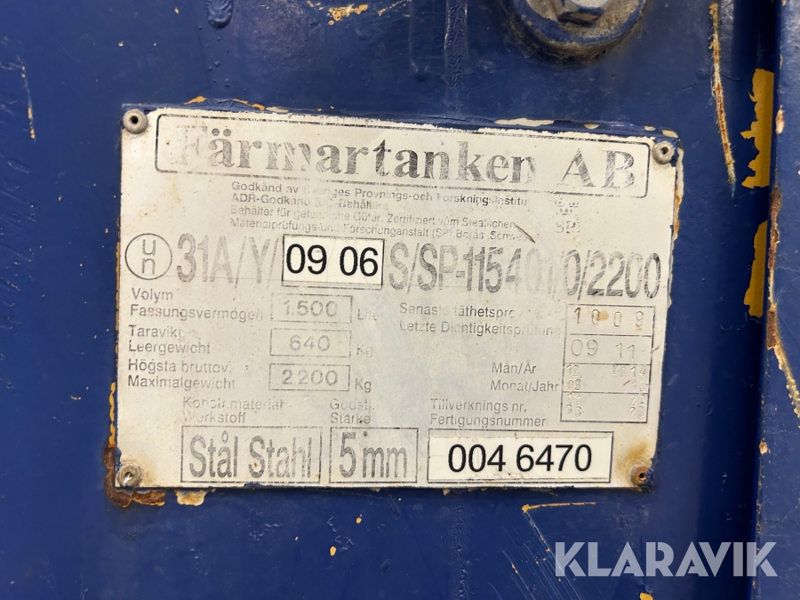 Dieseltank Färmartanken 1500 liter