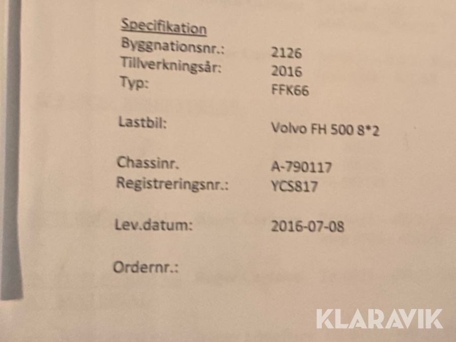 Lastbil med kran Volvo FH 500