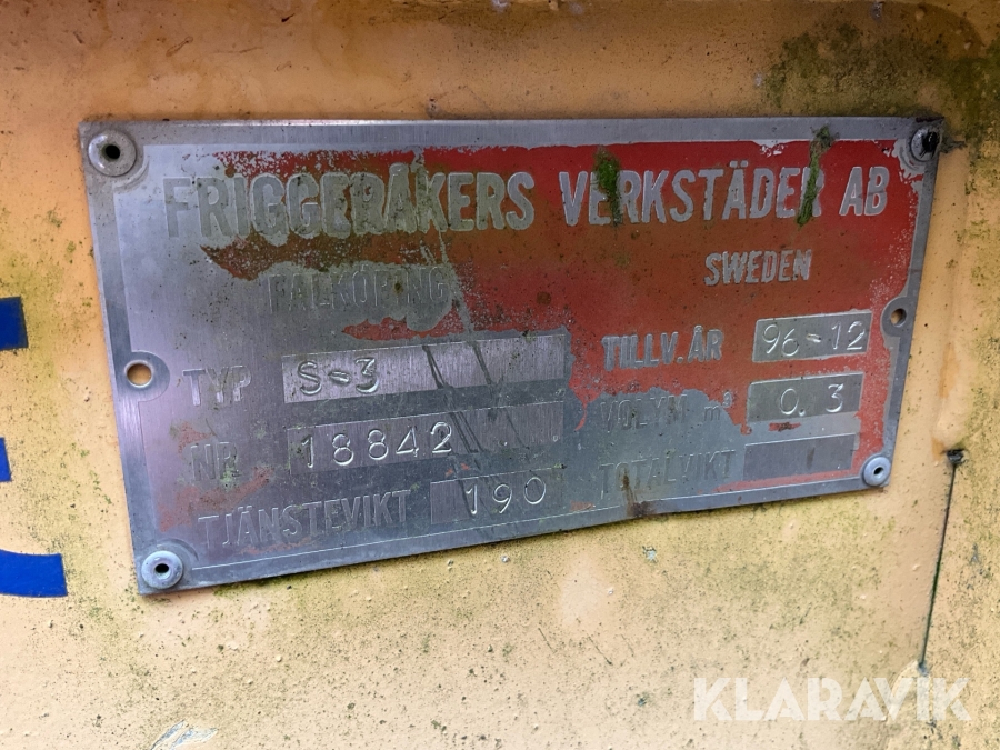 Boka frakt? Det finns ingen specifik information om frakt för just det här objektet, men om du skickar oss en förfrågan via vårt fraktformulär, så undersöker vi möjligheten. Paket, EU-pall eller större maskin? Klaravik har fraktavtal med Schenker och i de fall vi kan hjälpa till med frakt gäller det objekt som ryms i paket eller inom en EU-pall (upp till 120*80 cm och 990 kg). Det går att beställa frakt inom Sverige, dock inte till utlandet. Vid frakt på större maskiner rekommenderar vi gärna transportföretag som du kan kontakta.