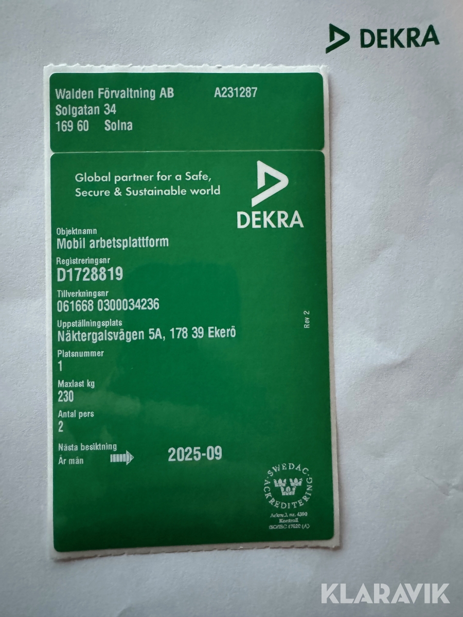 Du som köpare är skyldig att kontrollera objektet vid hämtning. Skiljer sig något avsevärt jämfört med informationen på klaravik.se? Kontakta då Klaravik innan du tar objektet från platsen. Läs fullständiga köpvillkor.
