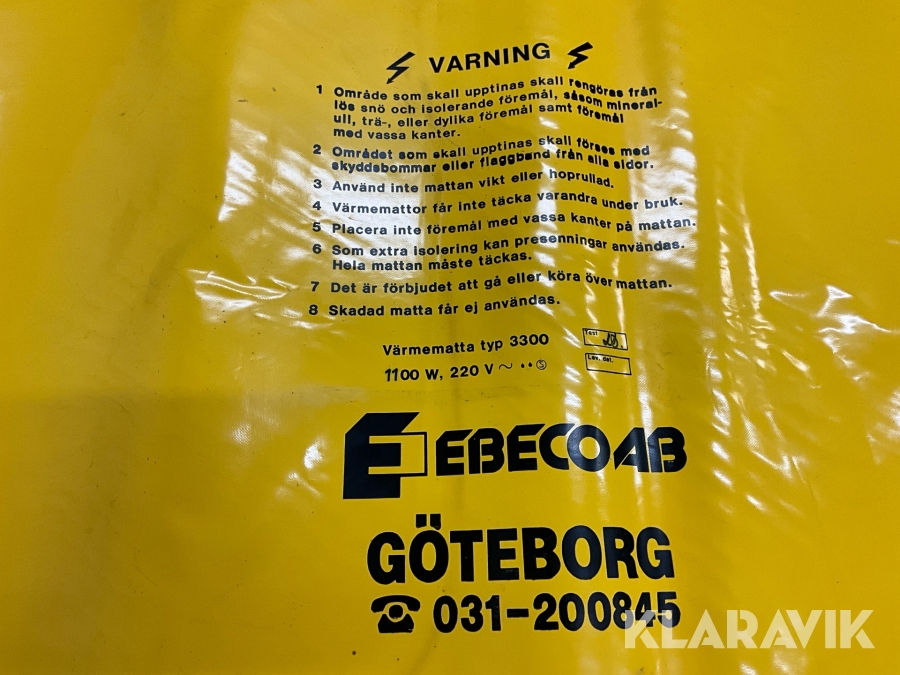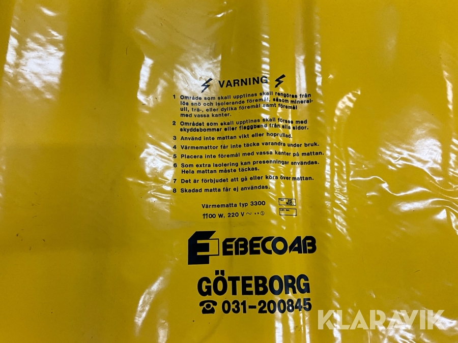 Tjältiningsmatta Ebeco Värmematta 3300 1100w 220v