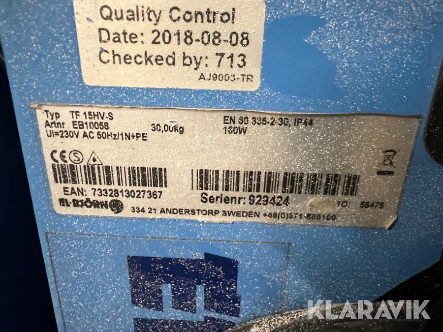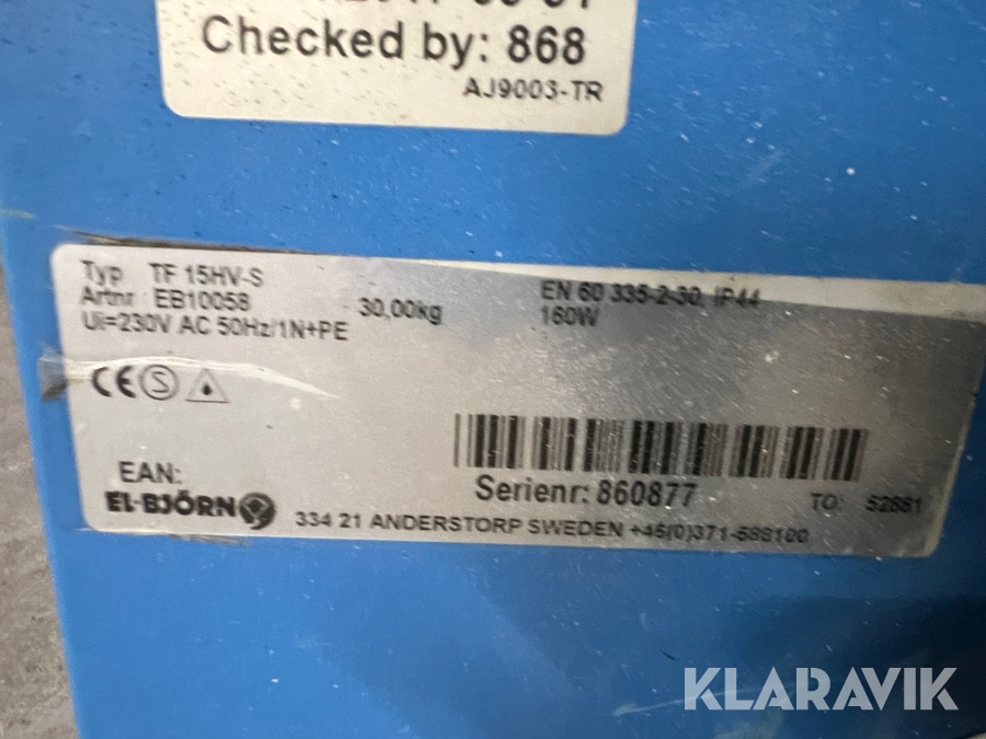 Du som köpare är skyldig att kontrollera objektet vid hämtning. Skiljer sig något avsevärt jämfört med informationen på klaravik.se? Kontakta då Klaravik innan du tar objektet från platsen. Läs fullständiga köpvillkor.