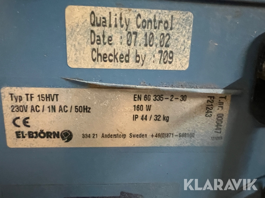 Du som köpare är skyldig att kontrollera objektet vid hämtning. Skiljer sig något avsevärt jämfört med informationen på klaravik.se? Kontakta då Klaravik innan du tar objektet från platsen. Läs fullständiga köpvillkor.