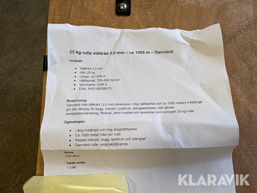 Du som köpare är skyldig att kontrollera objektet vid hämtning. Skiljer sig något avsevärt jämfört med informationen på klaravik.se? Kontakta då Klaravik innan du tar objektet från platsen. Läs fullständiga köpvillkor.