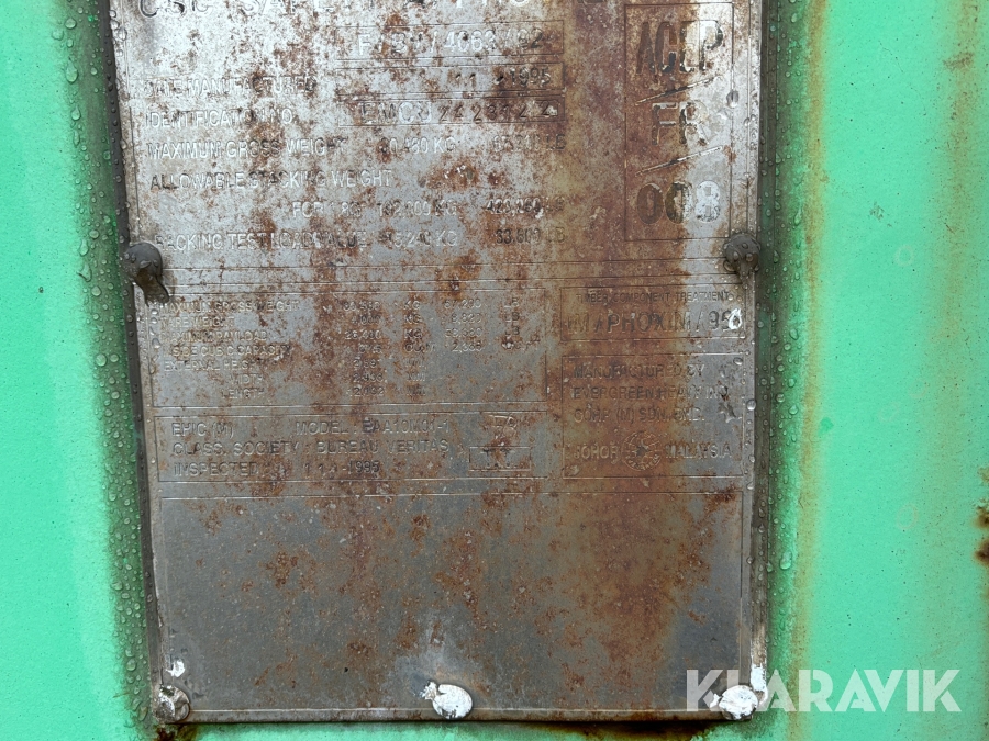 Container 40 fot, med oanvända verktyg och inredning