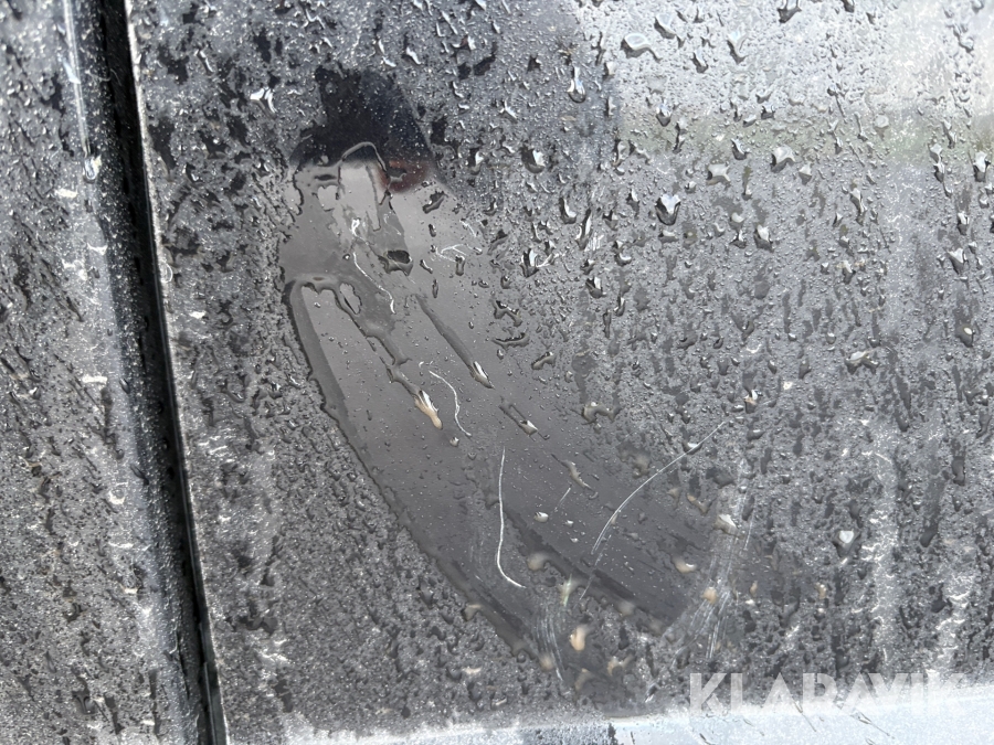 Lacken har spruckit och flagnat under vänster bakdörr