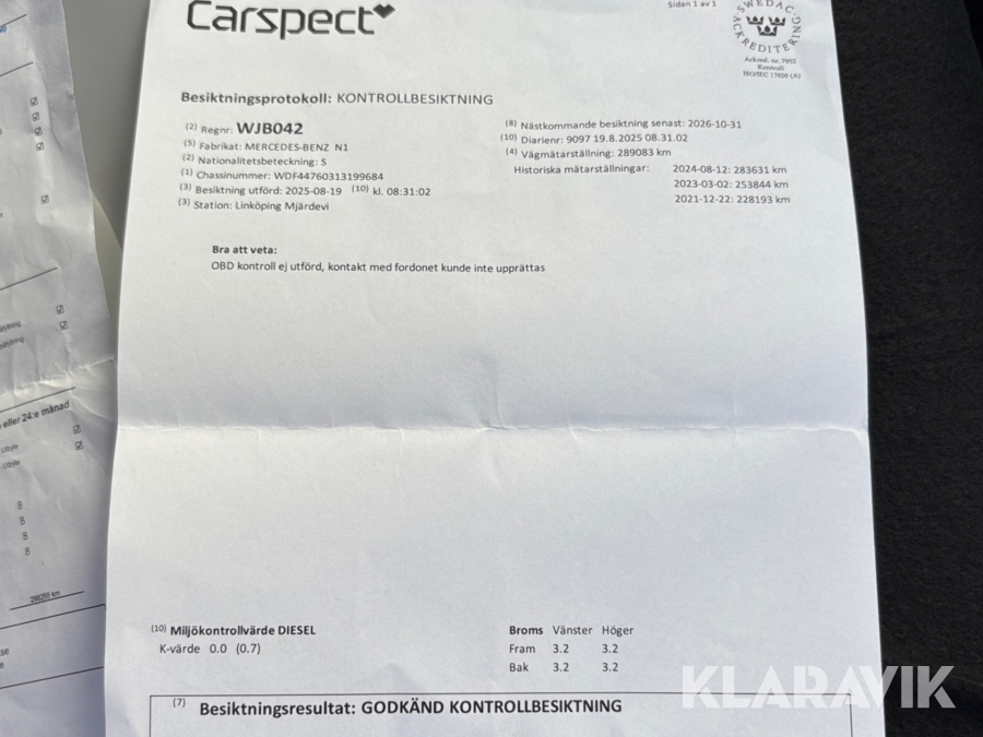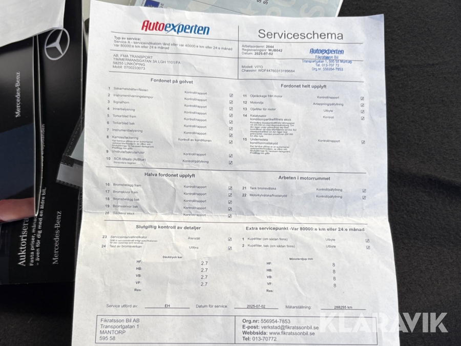 Service har genomförts de senaste 12 månaderna på verkstad
