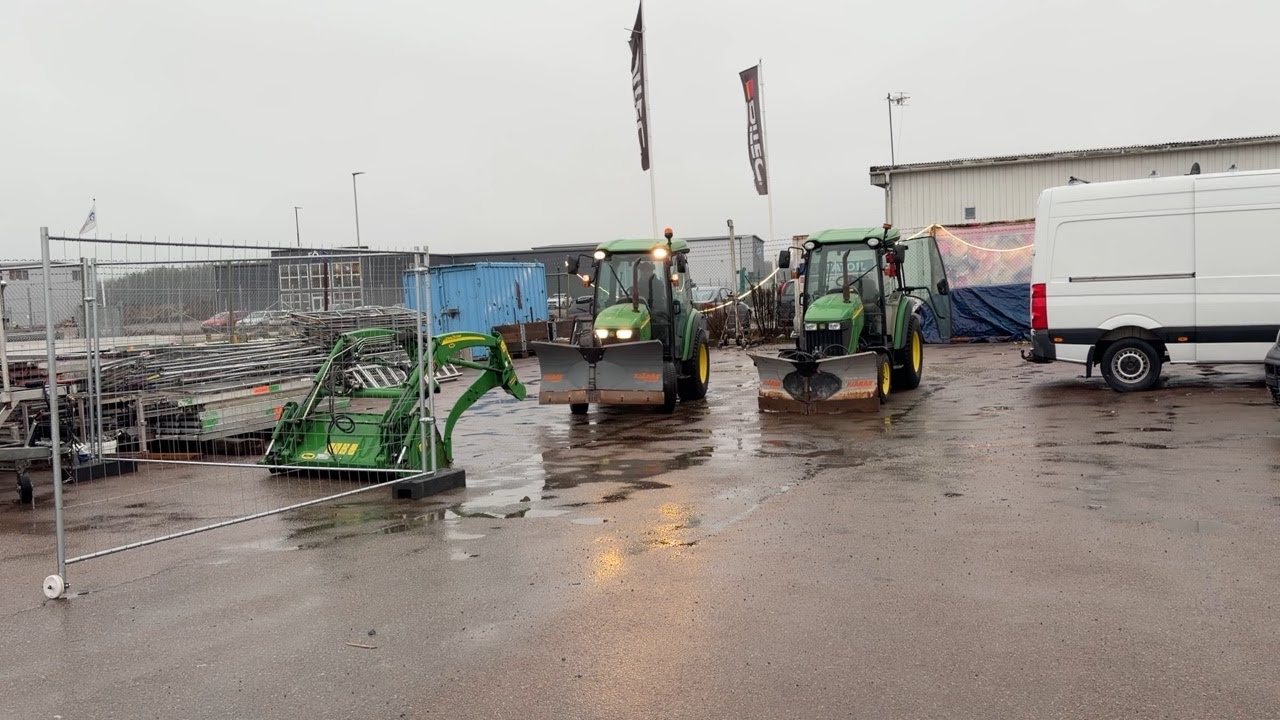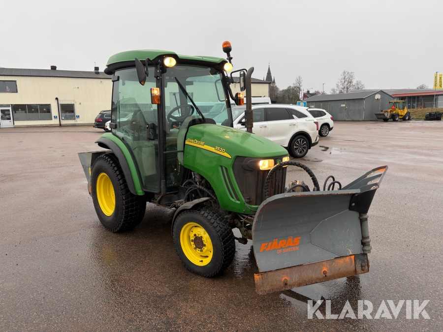 Traktor John Deere 3520 med plog och Sandspridare