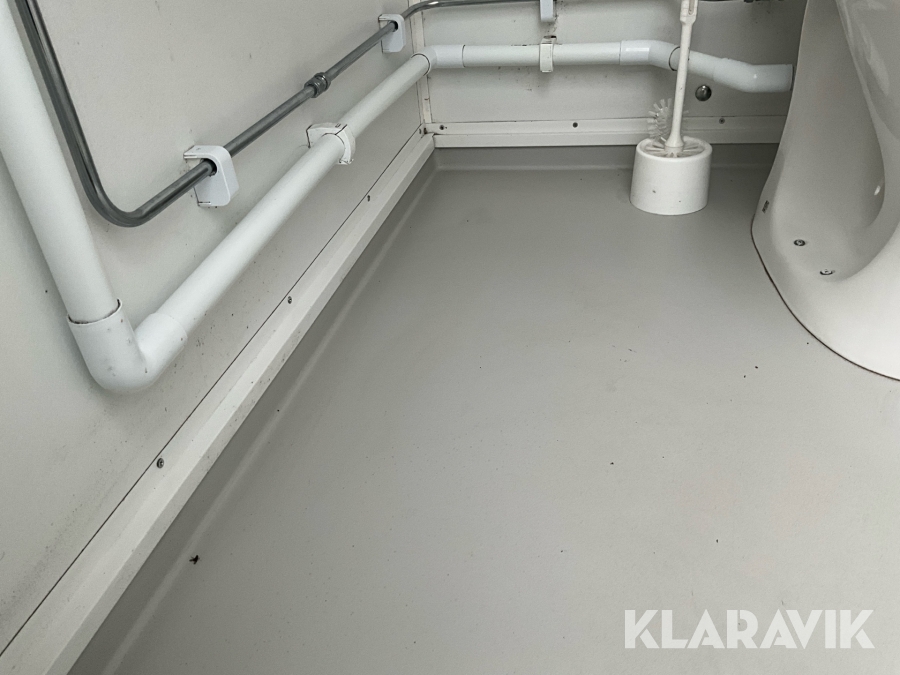 Vattenspolad toalett med anslutning till vatten och avlopp.