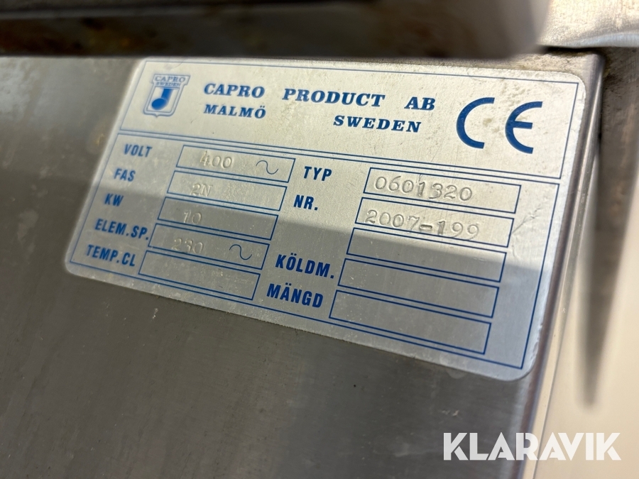 Boka frakt? Det finns ingen specifik information om frakt för just det här objektet, men om du skickar oss en förfrågan via vårt fraktformulär, så undersöker vi möjligheten. Paket, EU-pall eller större maskin? Klaravik har fraktavtal med Schenker och i de fall vi kan hjälpa till med frakt gäller det objekt som ryms i paket eller inom en EU-pall (upp till 120*80 cm och 990 kg). Det går att beställa frakt inom Sverige, dock inte till utlandet. Vid frakt på större maskiner rekommenderar vi gärna transportföretag som du kan kontakta.