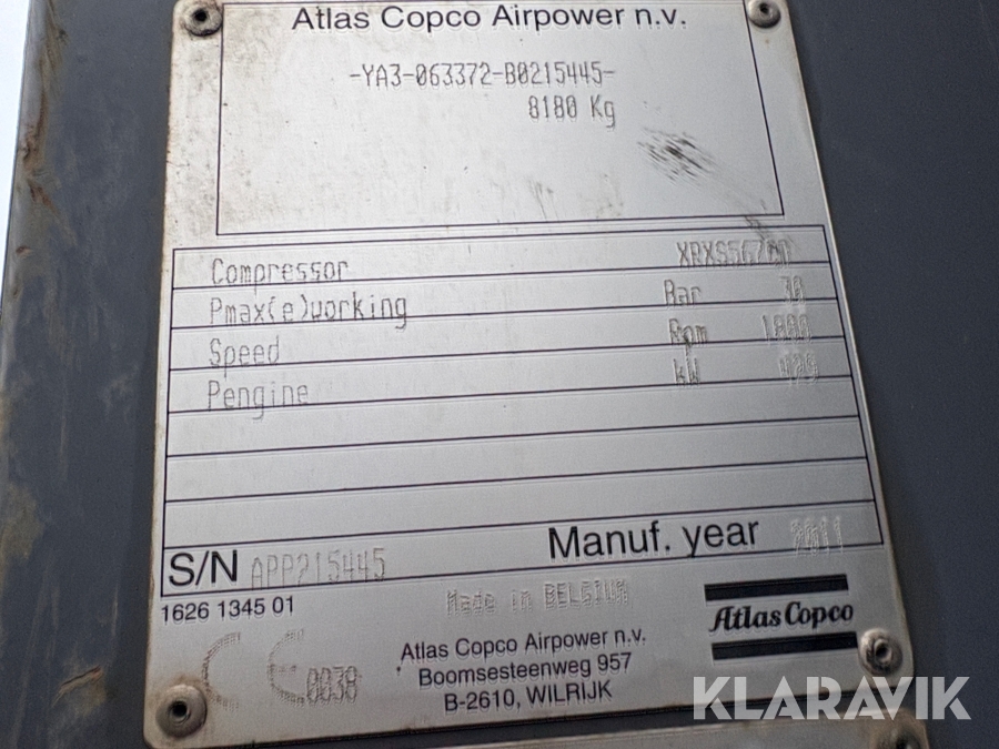 Kompressor Atlas Copco Drillair XRXS 567 på lastväxlarram