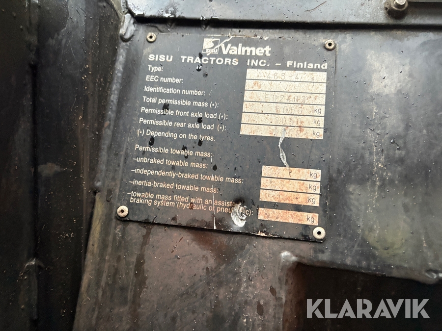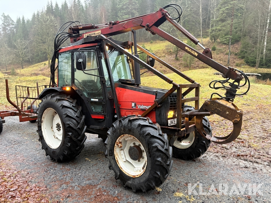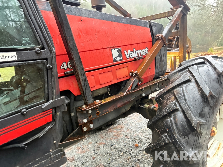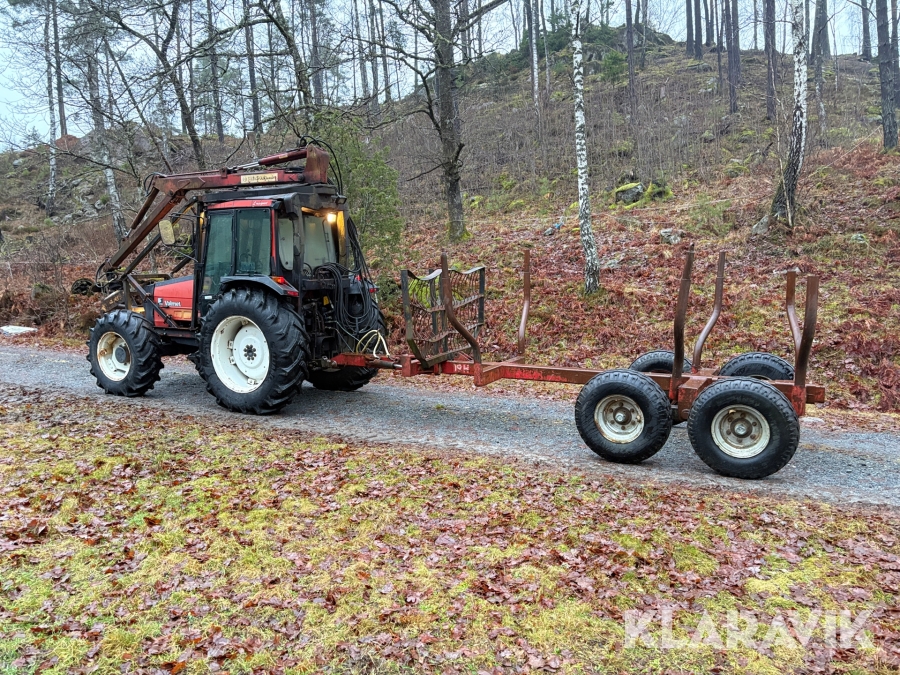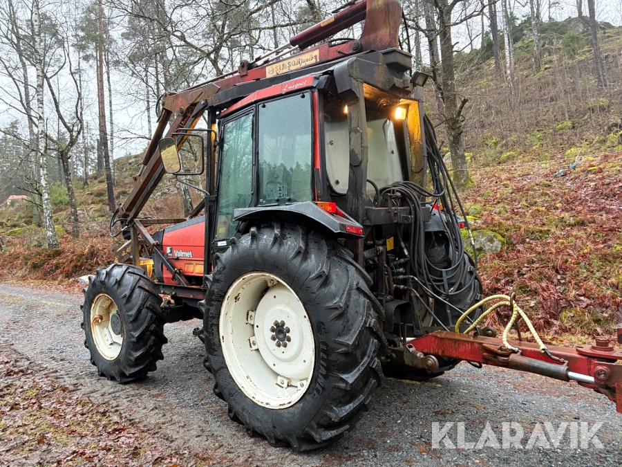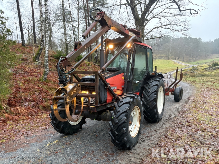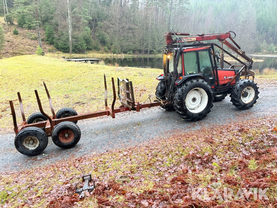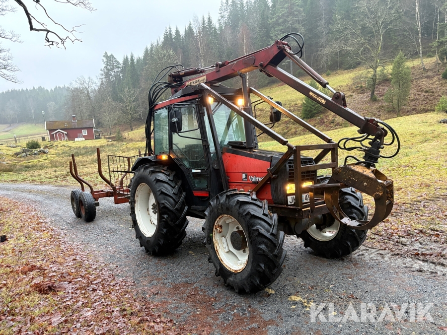 Traktor Valmet 465-4 med skogskran och vagn