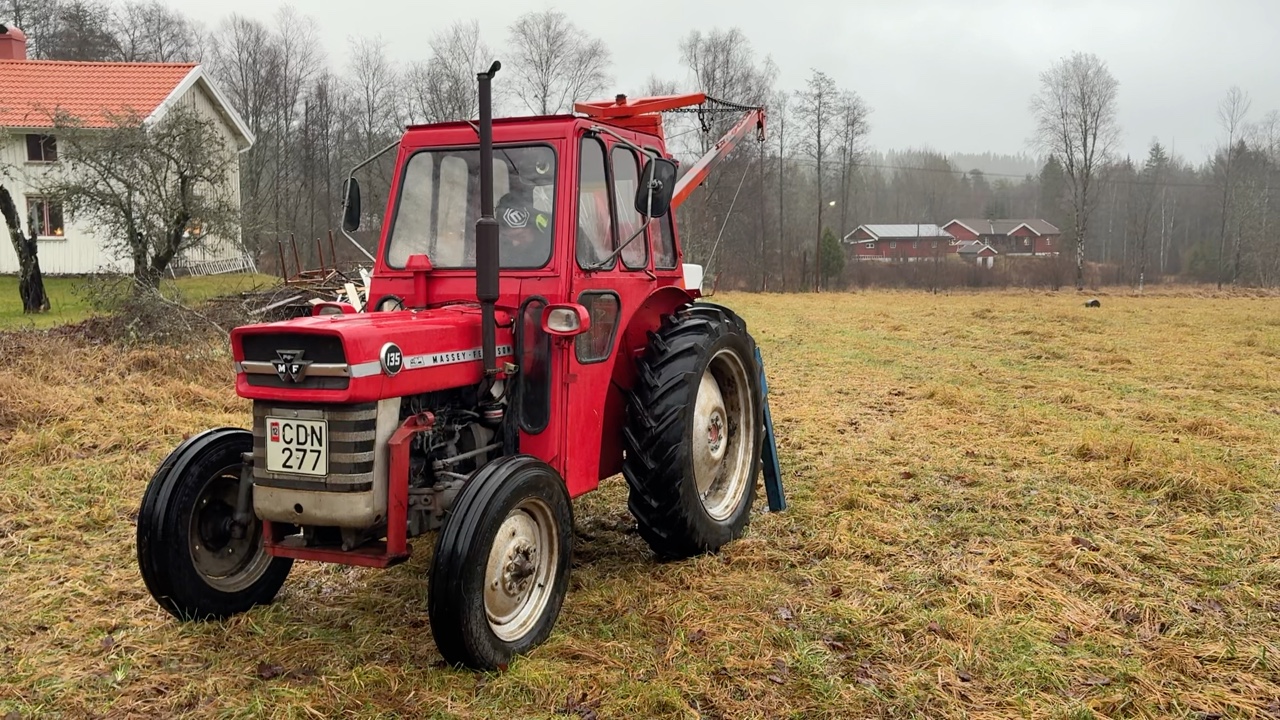 Veterantraktor Massey Ferguson 135 med kran och vagn