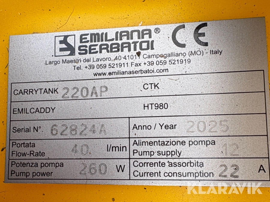 Dieseltank Emiliana Serbator 220AP 12V pump