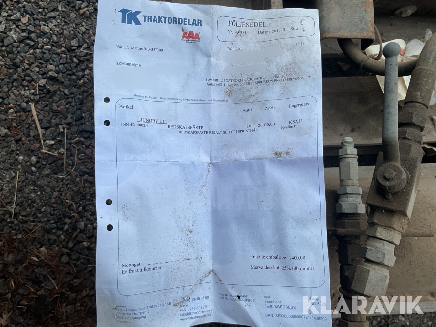Boka frakt? Det finns ingen specifik information om frakt för just det här objektet, men om du skickar oss en förfrågan via vårt fraktformulär, så undersöker vi möjligheten. Paket, EU-pall eller större maskin? Klaravik har fraktavtal med Schenker och i de fall vi kan hjälpa till med frakt gäller det objekt som ryms i paket eller inom en EU-pall (upp till 120*80 cm och 990 kg). Det går att beställa frakt inom Sverige, dock inte till utlandet. Vid frakt på större maskiner rekommenderar vi gärna transportföretag som du kan kontakta.
