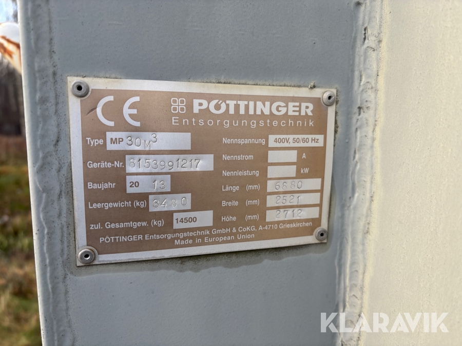 Komplett Komprimator Pottonger SSC 11 wellpappskruv