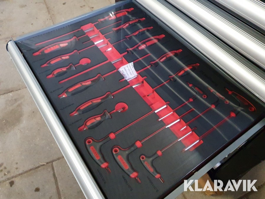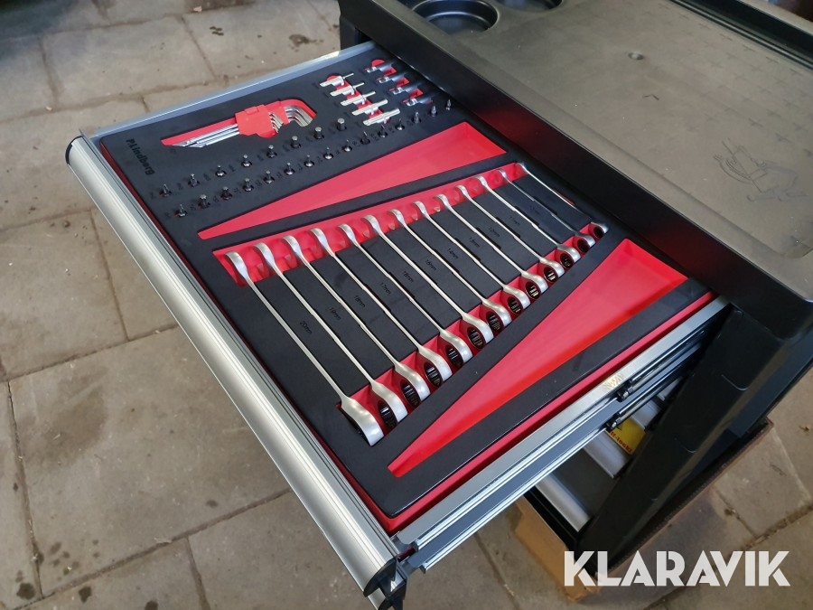 - Hylsnyckelset, skruvmejslar, ringnycklar med spärrfunktion, hållare och diverse tänger