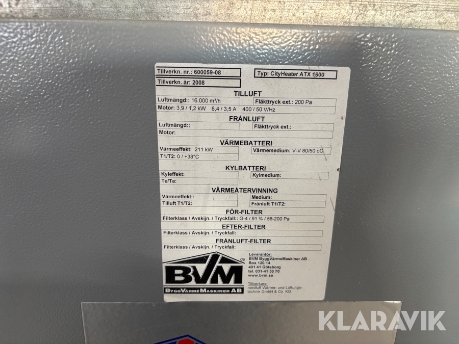 Hetvattenvärmare BVM CityHeater ATX 1600