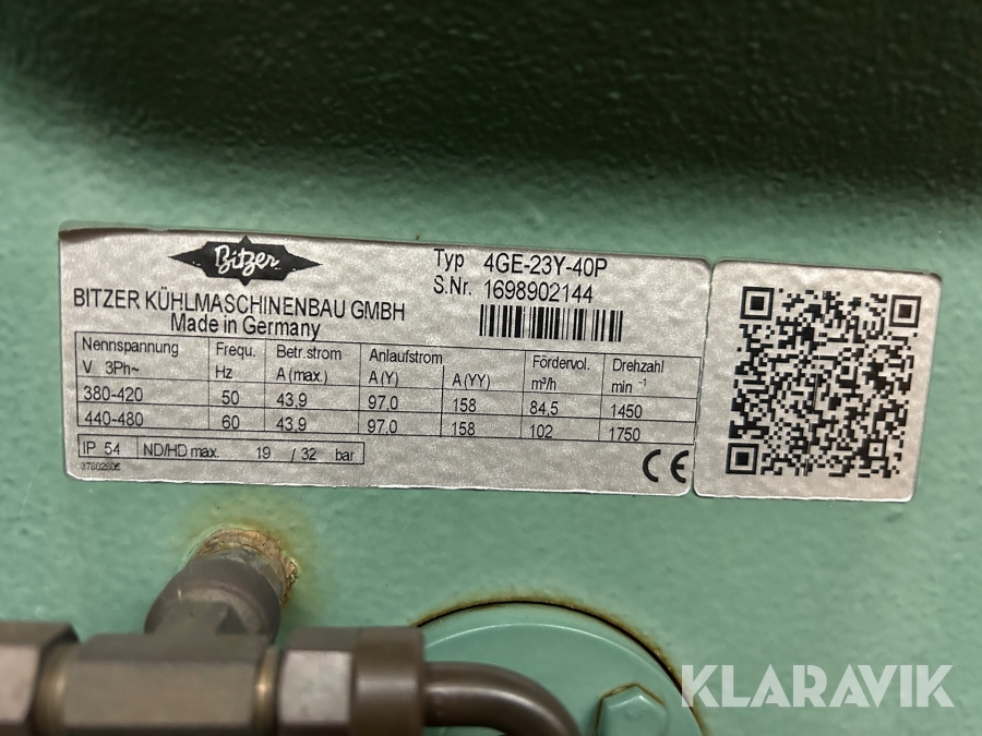 UT-aggregat Bitzer F302H till kylaggregat