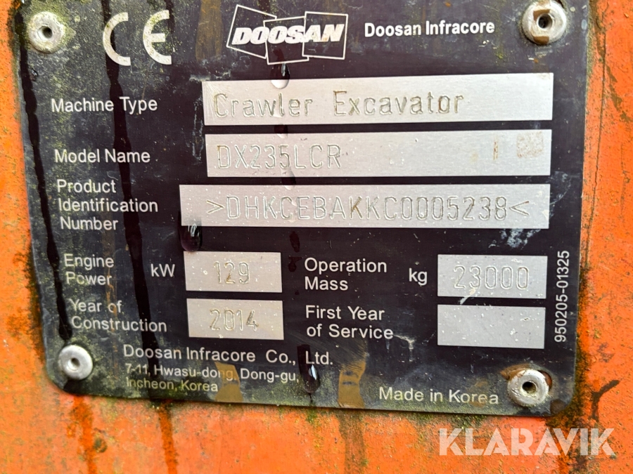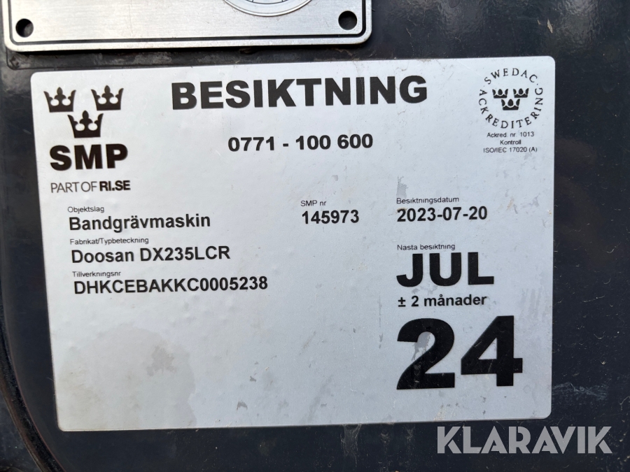 Grävmaskin Doosan DX 235LCR med moba grävsystem, rototilt och redskap