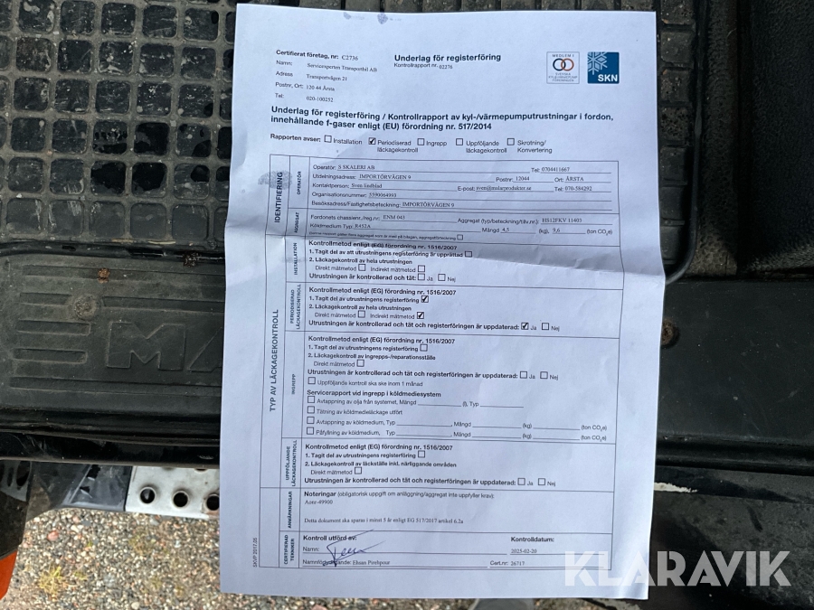 • Serie/chassinummer framgår