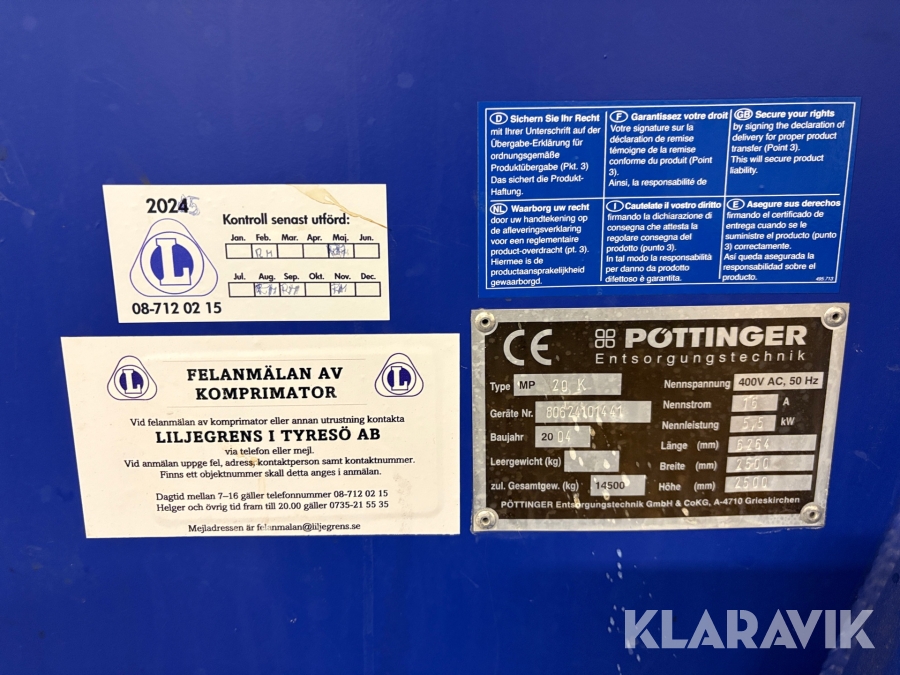 Komprimator Pottinger MP 20 K med kärlvändare