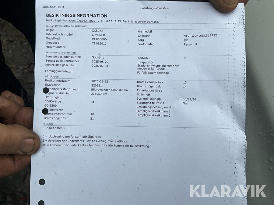 Du som köpare är skyldig att kontrollera objektet vid hämtning. Skiljer sig något avsevärt jämfört med informationen på klaravik.se? Kontakta då Klaravik innan du tar objektet från platsen. Läs fullständiga köpvillkor.