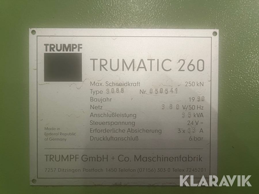 Stansmaskin Trumpf Trumatic 260