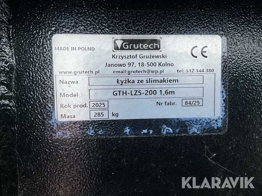Foderskopa Grutech GTH-LZS-200 Trima/SMS, 1,6 m, med skruv
